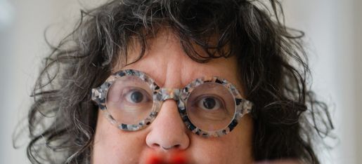 relaxed Devon illustrator & author during their photo shoot in A North Devon coffee shop
